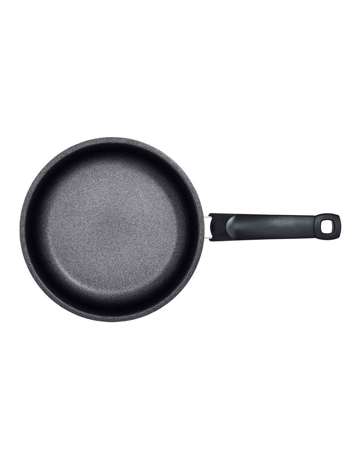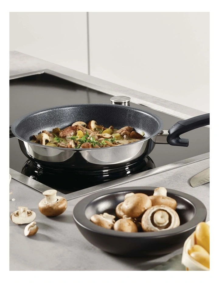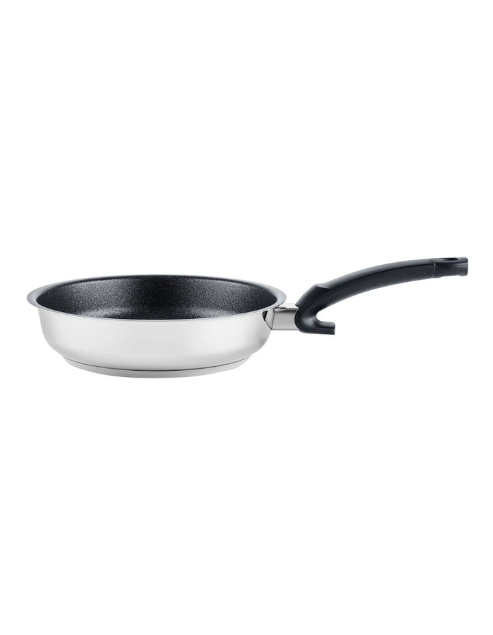 Scratches are a thing of the past with the adamant pan. The secret lies in an extremely tough robust non-stick coating containing silicon carbide particles. These form an innovative surface texture that is as hard as stone and even safe for use with metal utensils making the adamant pan a real all-rounder on the stovetop. A stainless steel exterior body for a winning combination.