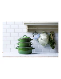 OPTIMIZED DESIGN: Bonded, heatproof grab handles give you total control while a roomy lid adds a little extra space. Enameled steel body quickly absorbs heat for quick, even cooking. Naturally non-stick enameled interior is easy to clean.