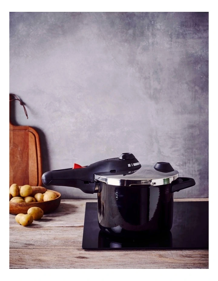 The pressure cooker can be used on all stovetops, including induction (but is not oven safe) and can be easily cleaned, as it is dishwasher safe (except for the lid).