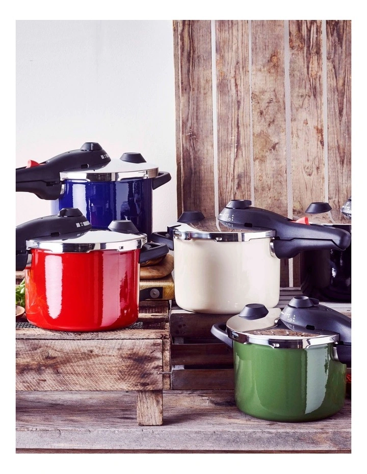 The BK enamel pressure cooker is made from enamelled steel, , a non-toxic, non-porous and scratch resistant material for fast heat conduction and maximum heat retention. The cooker allows you to save time and energy by enabling you to prepare healthy and tasty family meals in one pan.