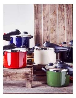 The BK enamel pressure cooker is made from enamelled steel, , a non-toxic, non-porous and scratch resistant material for fast heat conduction and maximum heat retention. The cooker allows you to save time and energy by enabling you to prepare healthy and tasty family meals in one pan.