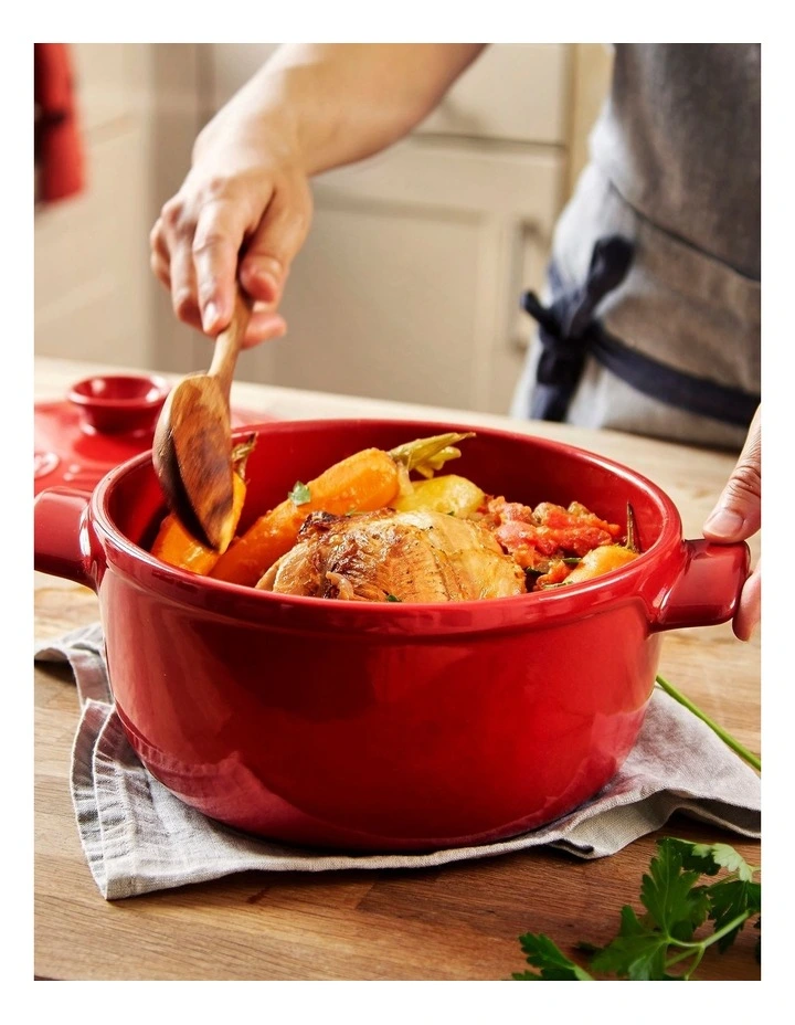 Thanks to the innovative Flame ceramic, Emile Henry stewpots offer all the advantages of cooking in ceramic : slow, even cooking which brings out the flavours of your ingredients. The lid makes sure the flavoured condensation circulates inside thanks to the dots underneath.
