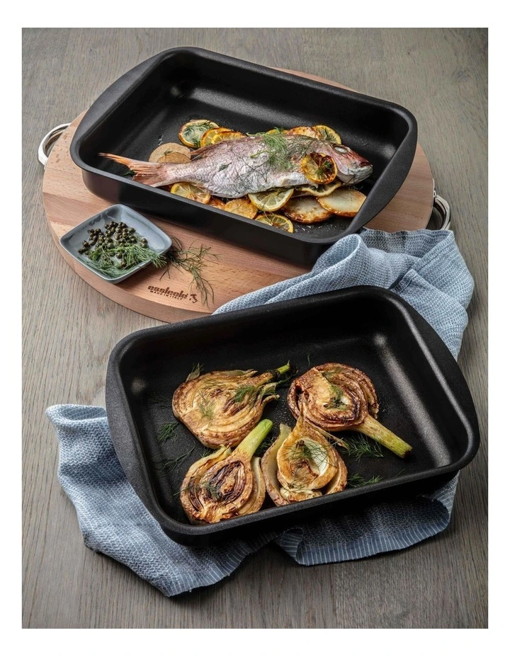 Care and Use Instructions: OVEN SAFE to 260C SUITABLE FOR ALL COOKTOPS excluding induction DISHWASHER SAFE for the ultimate convenience TWO SIZES for versatility in the kitchen – 31cm x 23cm x 6cm and 35cm x 27cm x 6.7cm LIFETIME WARRANTY