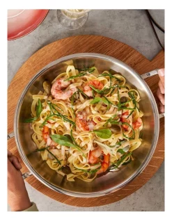 Features: Chef quality – made in Germany. Satin finish exterior. Energy efficient Cookstar base. Suits all cooktops. Metal lid. Large pouring rim. Measuring Scale. Oven use to 230 degs.