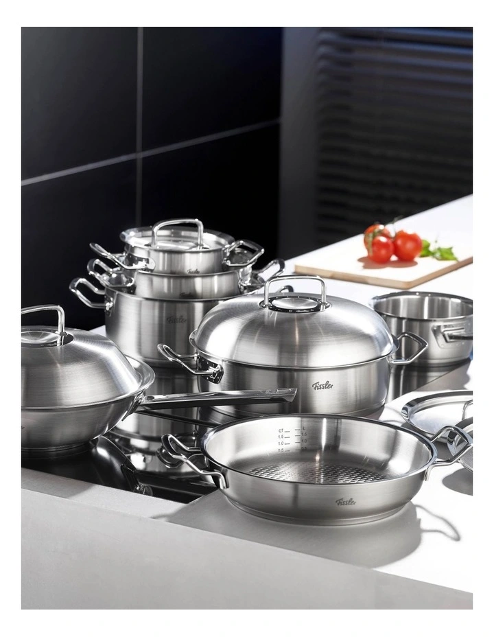 - Heavy metal lid with Fissler condensate-plus function for tastier & juicier dishes.