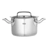 - Extra-large pouring rim and ergonomic Fissler metal handles – stays cool on electric stoves.