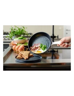 GreenPan Copenhagen combines smart technology with a sophisticated look & feel. Made with premium quality materials these hard anodized frypans have extra durability and are scratch resistant. Its modern and sleek design is finished off with a unique handle in brushed stainless steel, including etched detailing.