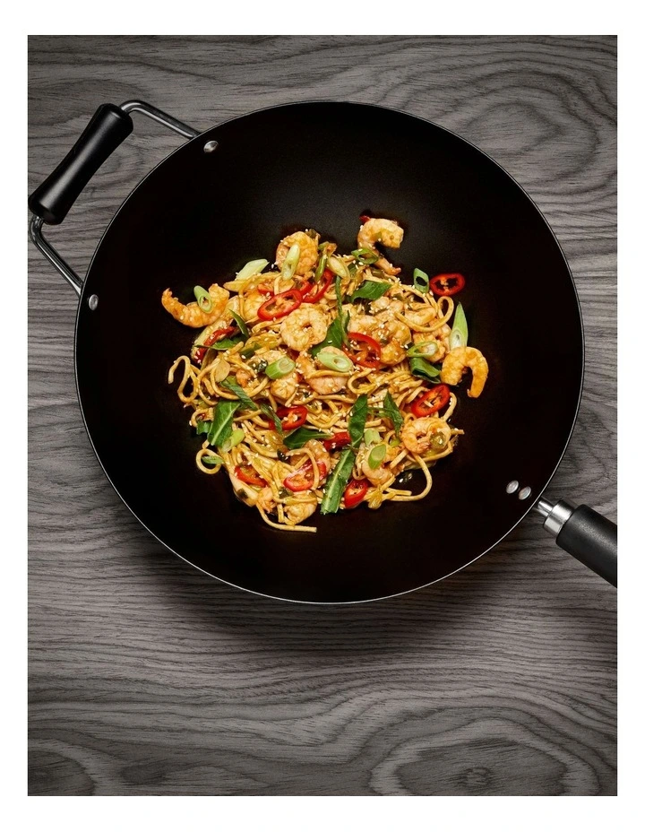 Carbon steel wok with superior Eclipse 3 layer (by Whitford), internally reinforced non-stick coating
