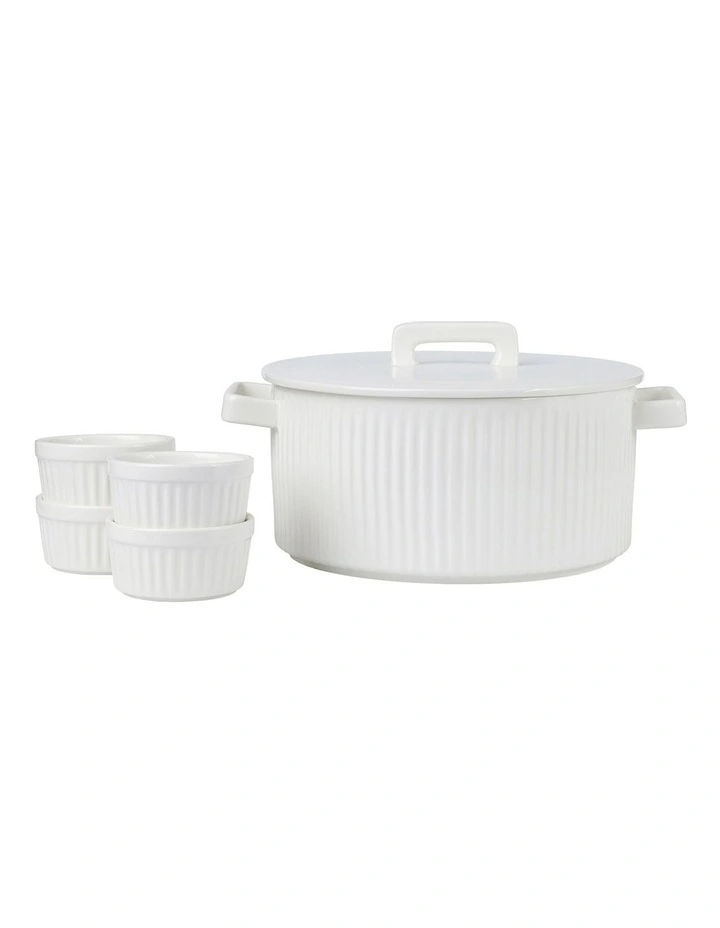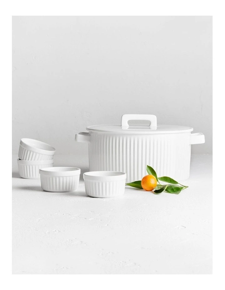 - Contains:1 Round Casserole 3L (29.5×24.0x14.5 cm), 4 Ramekin 8.5cm Set of 4 (8.5×8.5×4.5 cm)