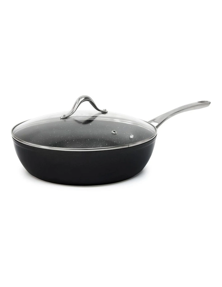 The TAN-IUM Saute Pan & Lid, developed by salt&pepper uses cutting edge technology to increase durability and ease of use. The 28cm pan features a multi-layer QuanTanium non-stick coating for lasting food release and easy clean up. It makes healthy, low fat, or even no fat cooking stylish and more enjoyable. The heatproof and ergonomic handle makes for easy manoeuvring while the pan’s non-stick surface ensures optimal results and easy-cleaning.