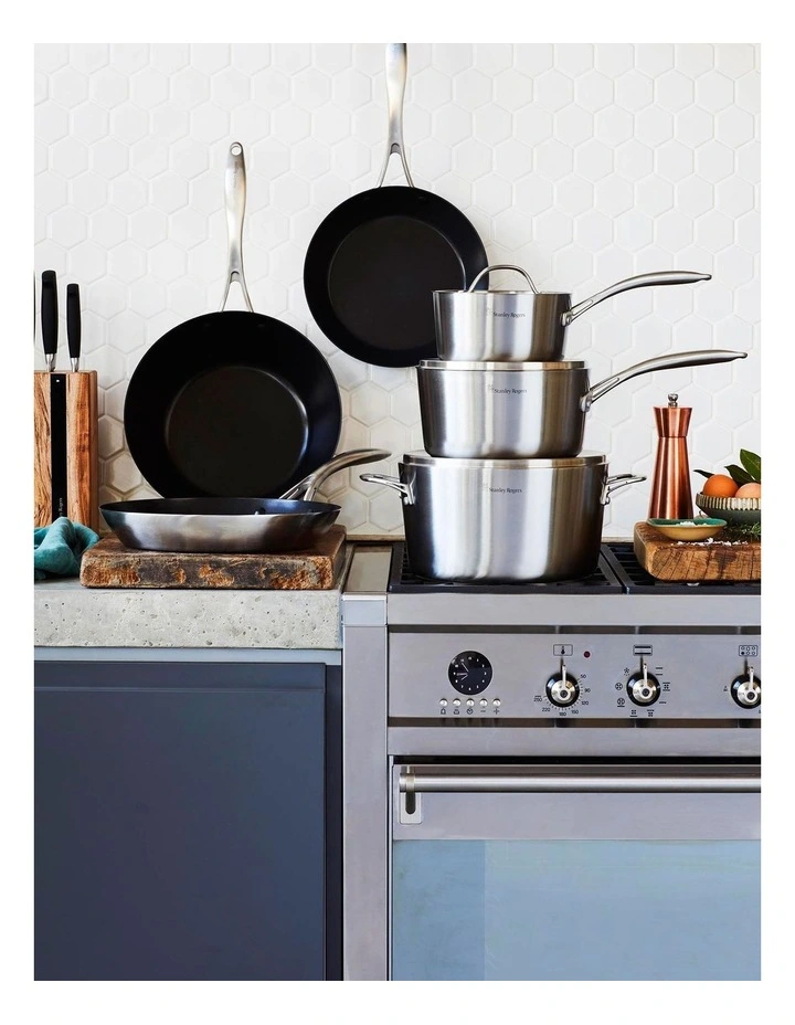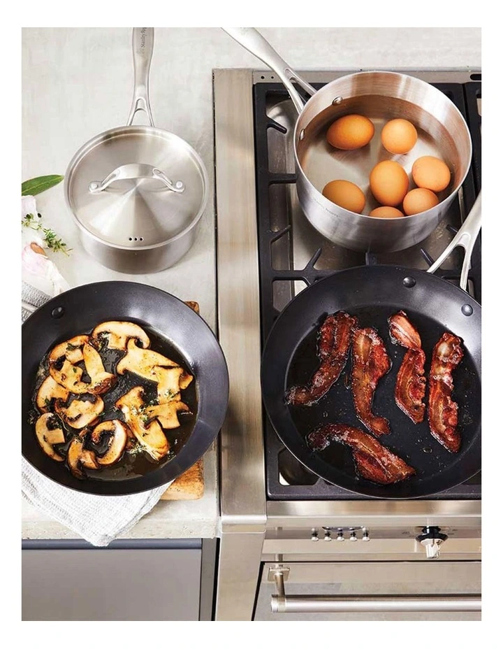 Modern style and great performance in one. Brushed stainless steel finish compliments the chic industrial look. TRI-PLY construction ensures efficient, uniform heating with precise temperature control for professional results.