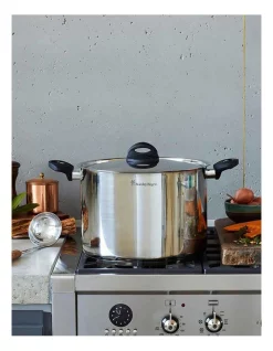TRI-PLY construction with a premium 18/10 stainless steel interior, rapid heat conducting aluminium core and magnetic stainless steel exterior. Supreme heat distribution and durability. Induction and all cooktop compatible. Solid induction base gives optimum connectivity and heat transfer on induction cooktops. Stainless steel lid. Double vented Cool Touch handle, steam vents and internal volume markings. Comes with a 50 year warranty.