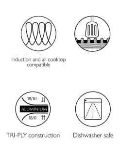 - TRI-PLY construction. Premium 18/10 stainless steel interior, rapid heat conducting aluminium core and magnetic stainless steel exterior. Supreme heat distribution and durability