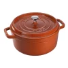 The Staub cocotte is unsurpassed for slow-cooking meats and vegetables to tender perfection, and for simmering hearty stews and soups. Cast iron possesses exceptional heat-retaining qualities, so the pot heats evenly throughout. The innovative lid features tiny spikes on the interior that continually release condensed liquid back onto the food, yielding moist, flavorful results.