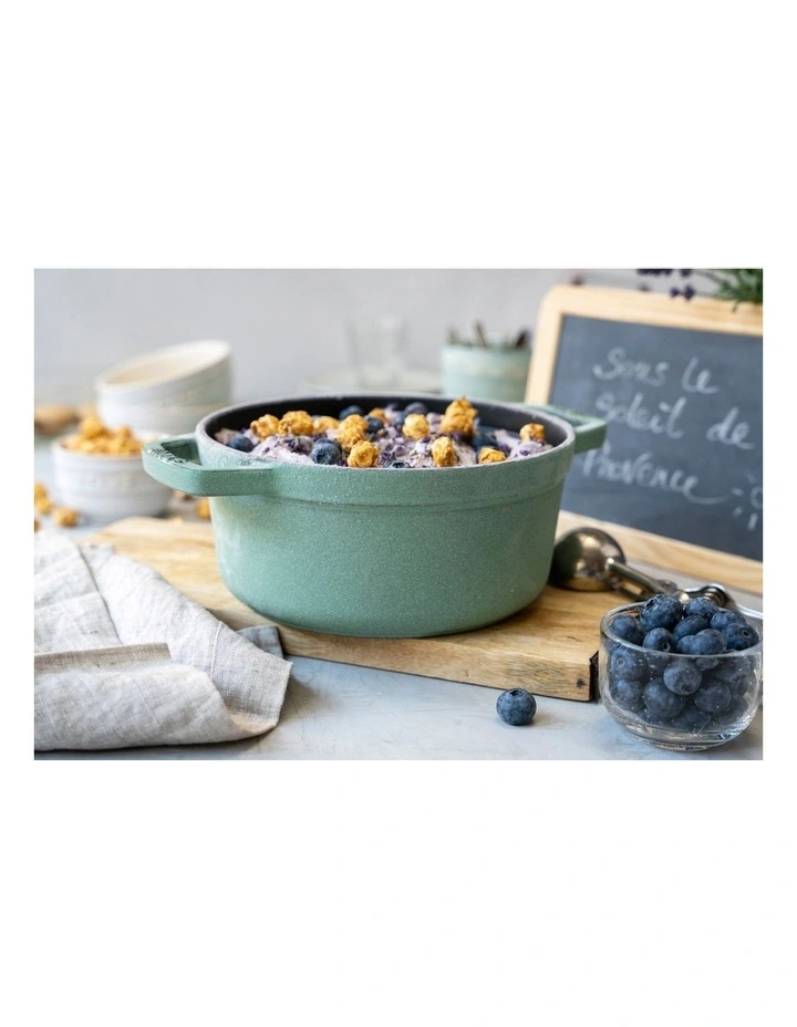 - Interior black matte enamel finish requires little seasoning over time and is more resistant to scratches and chips