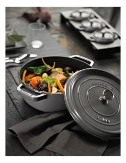 Staub’s special matte black enamel interior and self-basting spiked lid guarantee perfect browning and braising for flavor-enhanced food. With their exquisite enamel finish, each piece transitions beautifully from the kitchen to the table. From comfort food to sumptuous suppers, every dish is special when served in Staub.