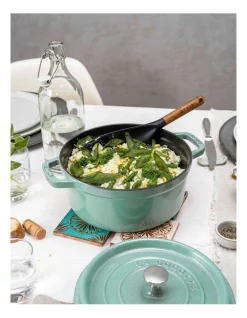 - Interior black matte enamel finish requires little seasoning over time and is more resistant to scratches and chips