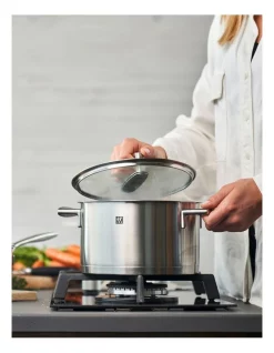 - Solid stainless steel cast handles for a particularly long stay-cool effect