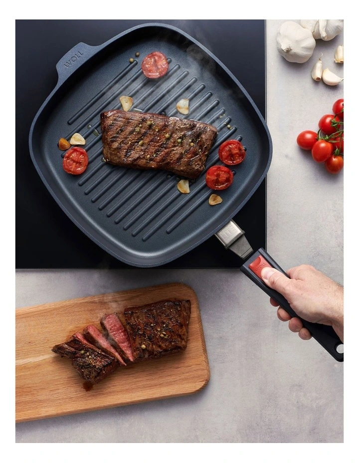 The WOLL Diamond Lite grill pan is a lightweight revolution in the kitchen. Made with our unique squeeze-casting technology, it’s wonderfully light and exceptionally strong for easy stovetop grilling, including induction. Get the perfect sear on meats and vegetables with the heat-efficient ridged surface and clean up in no time thanks to our 5-layer non-stick technology.